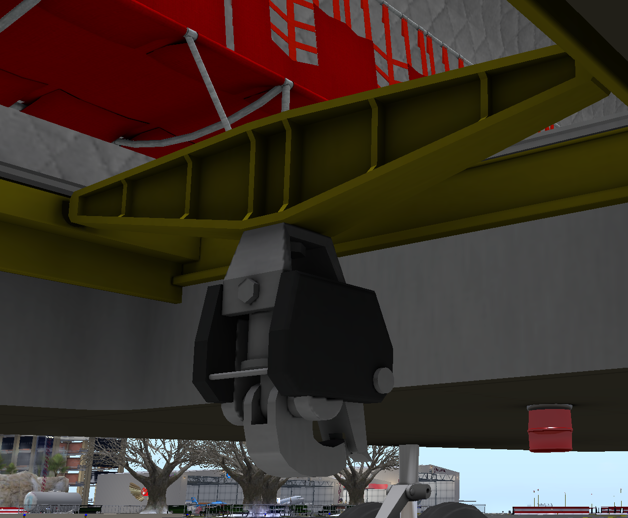 The middle cargo hook (see Figure 1) is positioned near the CG of the helicopter and is the ideal hook for larger single hook loads. The middle hook is mounted on a pivoting arm that swings up or down to allow the rsecue hatch door to be closed. The hook can also be removed to allow use of the rescue hoist system. Click the arm to swing it up or down. The middle hook will hide/show as necessary when the rescue winch is deployed or hidden.