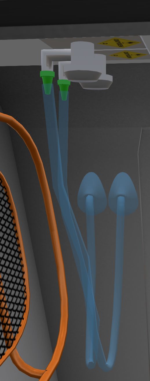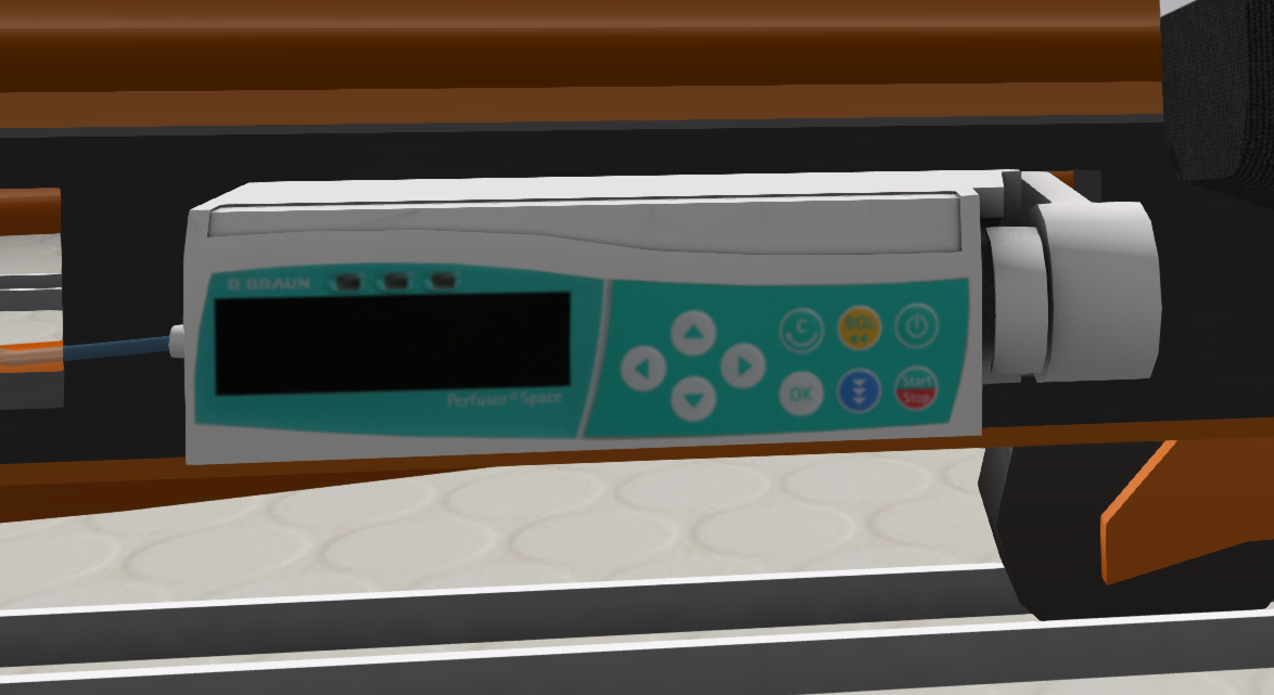 A perfuser (see Figure c) is attached to each stretcher. Clicking on a perfuser will toggle the tube from the unit to the patient.