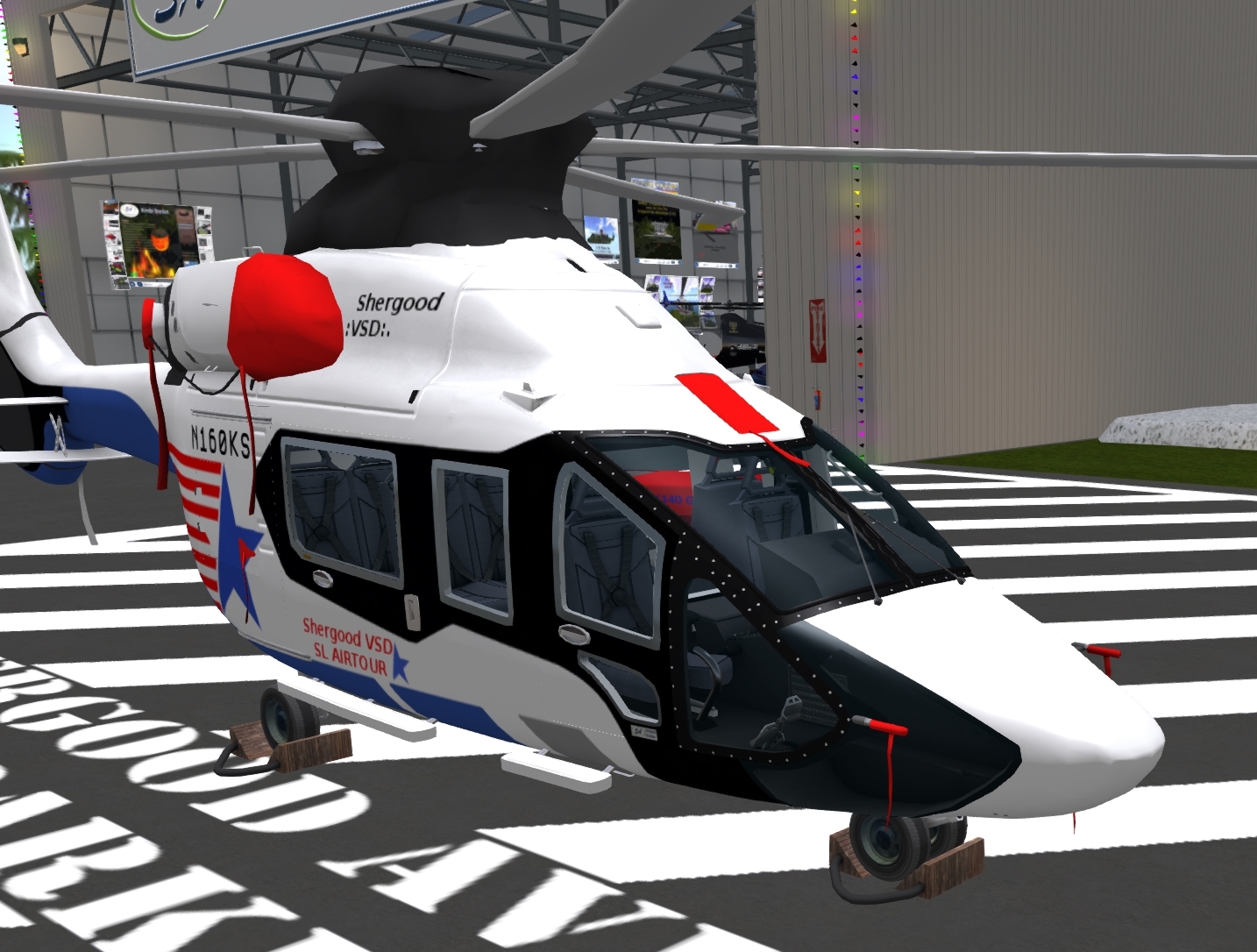 When parking your aircraft for an extended period of time, it is recommended that you use the provided covers and chocks (see Figure 2). The covers may be applied by selecting the "Covers" option from the @Get submenu. Click the covers again to remove (derez) them. Only the owner is allowed to remove the covers this way. Covers will also automatically derez if the aircraft moves more than 0.01m from its resting position. Alternatively, it is possible to take the covers to inventory then rez them near your aircraft. They will automatically snap into the proper position. You may only apply covers to your own aircraft this way.
